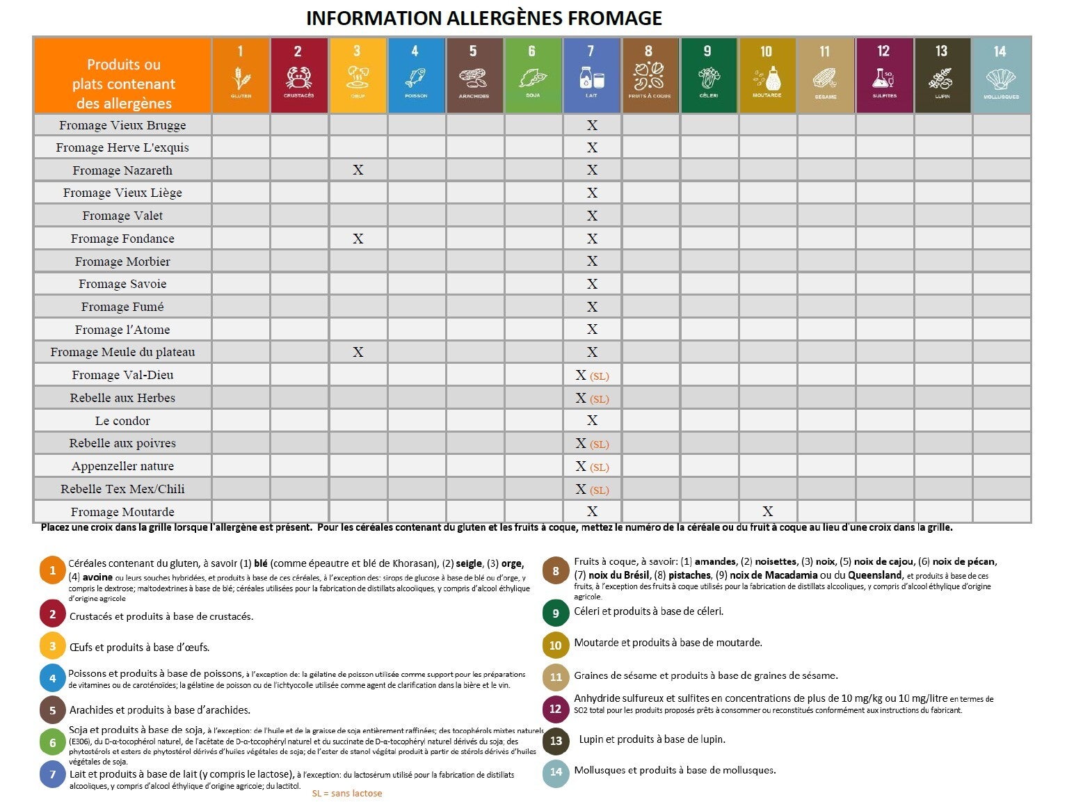 Si vous avez des difficultés à lire les allergènes , il est possible de télécharger le fichier ici plus haut
